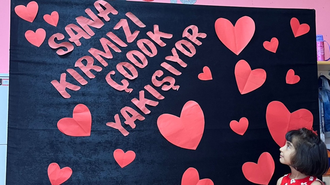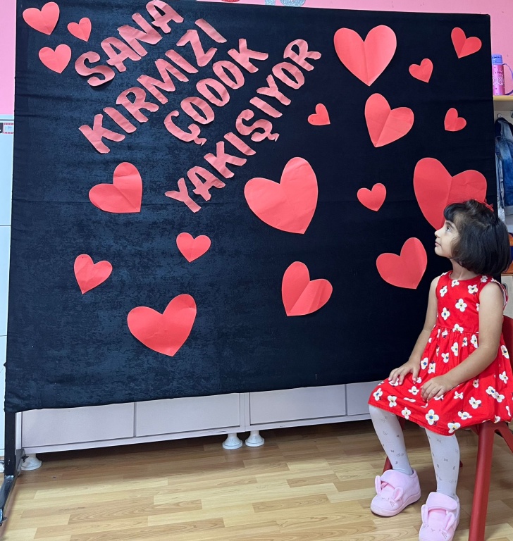Öğrencilerimiz renkleri öğrenmeye başladılar. İlk öğrendikerli renk: Kırmızı! Kırmızı onlara onlar kırmızıya çok yakıştılar.